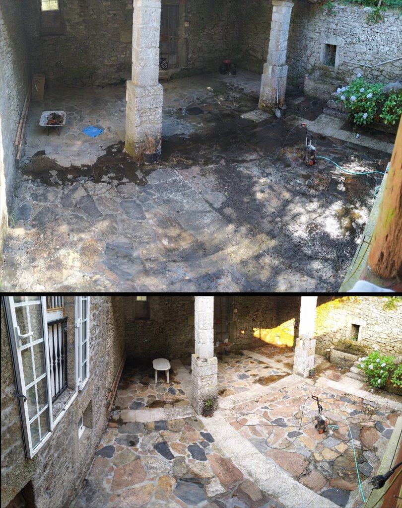 Del 14 al 24 de Agosto hicimos un vieje Manu y yo en coche. Como yo me encuentro regular de la artrosis, el pobre Manu tuvo que hacer todas las faenas, entre ellas la limpieza del patio con agua a presión (no se limpiaba desde hacía dos años):