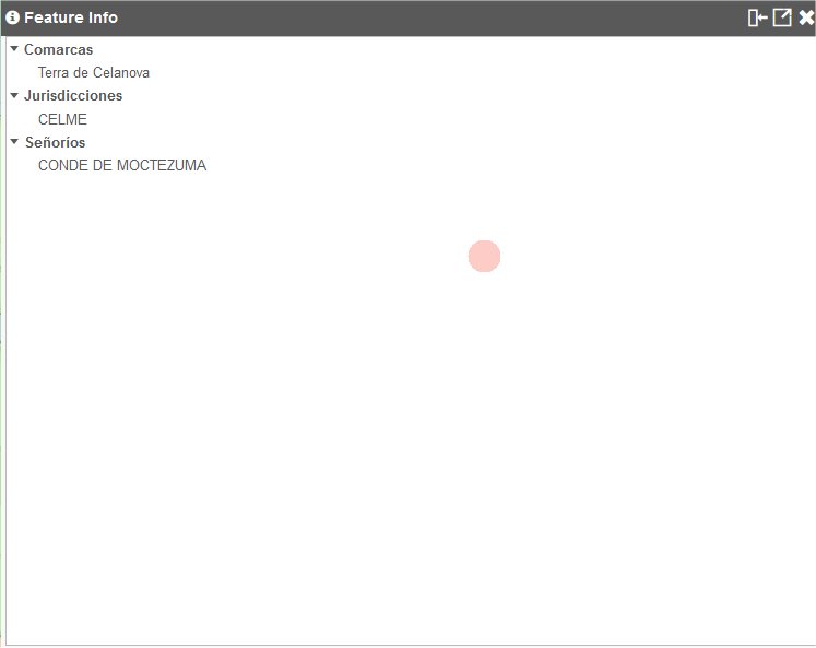 - Facendo click co rato sobre a xurisdición que queiramos consultar, poderemos obter unha información máis precisa. Por exemplo Celme, despregarase unha ventana co nome da actual comarca, nome da antiga xurisdición e señorío ao que pertencía: