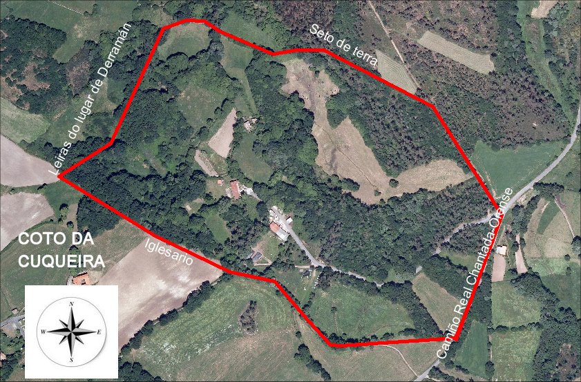 O COTO DA CUQUEIRA estaba entón moi ben definido e demarcado, limitando a poñente con leiras do iglesario de Santa Eugenia de Asma, polo Sur polo camiño de Chantada a Ourense e a nacente por un seto de terra que o separaba do monte pertencente ao lugar de Derramán e á parte do norte tamén iba confinando con leiras do lugar de Derramán ata desembocar nas debesas do iglesario: