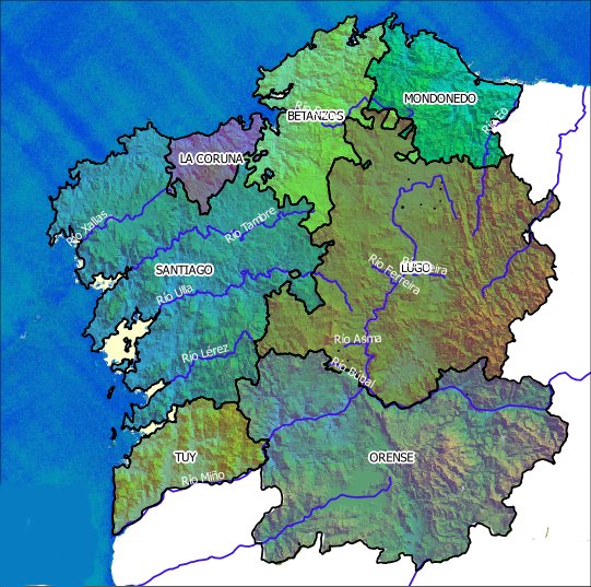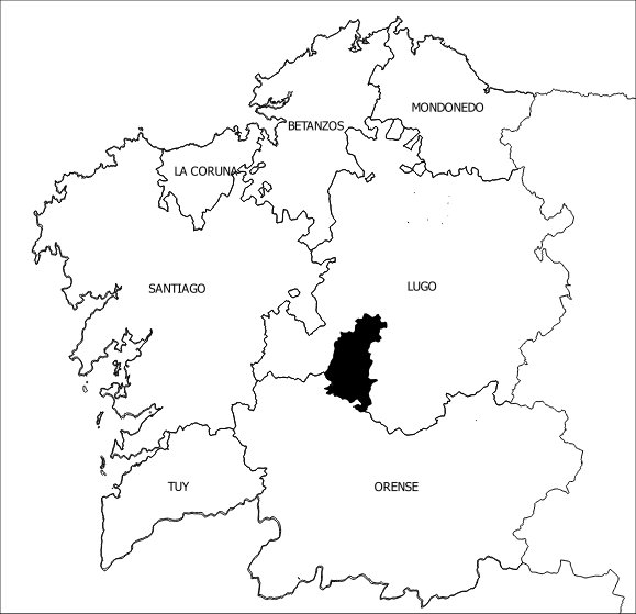 As sete provincias do Antiguo Reino de Galicia tiñan unha configuración muy distinta das actuales catro provincias (mapa 1). A parte Sur da provincia de Lugo comprendía as comarcas de Dozón, Camba e Deza, que na actualidade pertenecen á provincia de Pontevedra, e por contra a terra de Quiroga, na actualidade da provincia de Lugo, pertenecía á provincia de Ourense ver. Existían outras pequenas diferencias como as que afectaban ás freguesías de San Salvador e Santa Baia de Búbal, Marzás, Santa María de Temes e San Romao de Campos que na actualidade forman parte do concello de Carballedo (Lugo) e antes pertenecían á xurisdicción da Peroxa (Ourense) ver:
