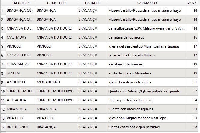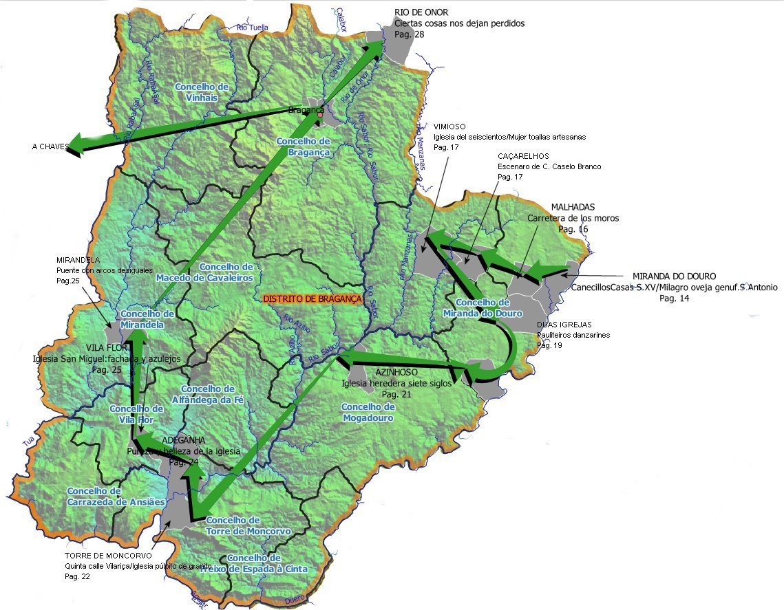 A primeira cidade de Portugal por onde entra Saramago “coa súa calma de viaxeiro minucioso” é Miranda do Douro, onde ninguén sería capaz de perderse entre outras cousas a Rua dá Costaninha, coas súas casas do século XV ver. En Mogadouro ver “todas as ladeiras de ao redor están cultivadas, é un xogo de bancales e cadros de planteles…”. En Azinhoso ver o viaxeiro reflexiona pois “Non está ben quedar só un cuarto de hora xunto a unha construción que ten setecentos anos…”. Só a igrexa da Misericordia e o seu púlpito de granito” ver valerían por unha parada en Torre de Moncorvo. Despois de Bragança visita Rio de Onor ver, onde se pregunta se os portugueses se levan ben cos españois e lle responden “Si, señor. Ata temos terras ao outro lado”.