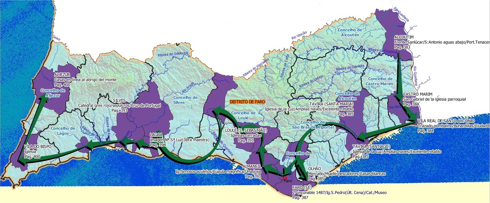 No río Vascão divídese a xeografía para empezar o Algarve. Por Alcautim e Castro Marim Saramago leva a Vila Real do Santo Antonio ver, vila trazada a escuadra polo marqués de Pombal no século XVIII, repetindo o proxecto da cidade baixa lisboeta. Por Tavira e Olhao chega a Faro, onde visita a catedral e o museo. Segue a São Lorenço de Almansil ver con “os seus azulexos…a súa cúpula magnífica, a preciosa xoia que toda a igrexa é”. A igrexa de Estômba ver parécelle unha catedral en pequeno, pero ten excelentes azulexos e dúas columnas esculpidas. Laméntase Saramago de que por culpa do turismo non se fale apenas portugués. Continua o seu camiño por Sagres e o cabo de San Vicente ata terminar en Aljezur e Santiago de Cacém, onde admira as ruínas romanas de Miróbriga.