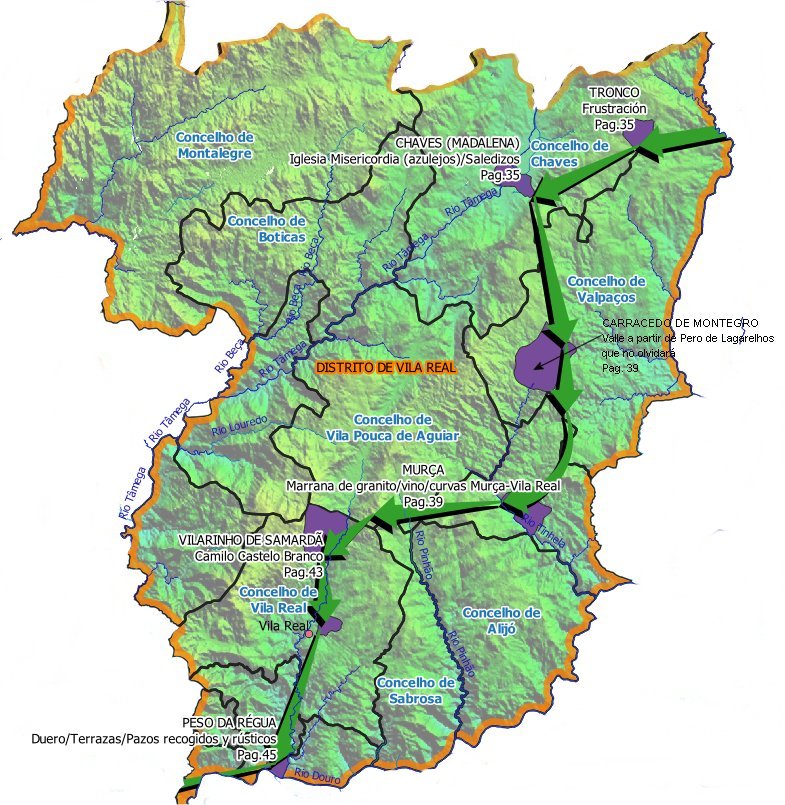 Desde Bragança desprázase Saramago a Chaves (distrito de Vila Real), onde visita entre outras cousas a igrexa barroca da Misericordia ver, coas súas columnas torsas e a sua nave chea de azulexos. Segue por Vila Pouca de Aguiar cara Vila Real por un val “que nunca esquecerá”. En Vila Real é visita obrigada o palacio de Mateus cos seus xardíns ver, un golpe de xenio do arquitecto Nasoni, “cuns pináculos a primeira vista desproporcionados”. Na baixada cara o Douro por Peso da Régua recórdanos o viaxeiro que “o bancal alcanza a súa perfección” e onde Saramago “sente unha gran paz na alma diante dos pazos recolleitos e pequenos, netos rústicos de Nasoni” ver.