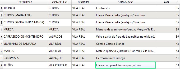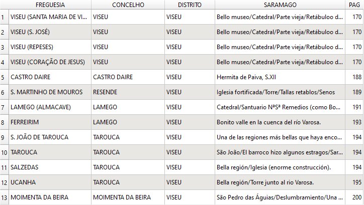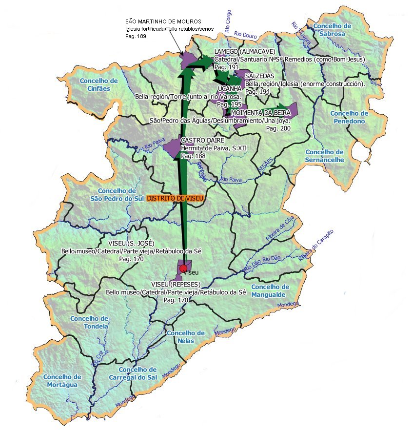 Saramago, ademáis de Viseu e Lamego, visitou a ermida do Paiva en Castro Daire ver, así como São Martinho de Mouros ver. Para él São Pedro das Águias ver «é un enigma situado entre bosques, un lugar fora do mundo, unha xoia que o tempo e o vento foi mordendo por todos lados». Ucanha, Salzedas, Tarouca ver e São João de Tarouca ver «conforman unha das rexións máis belas que o viaxeiro atopase».
